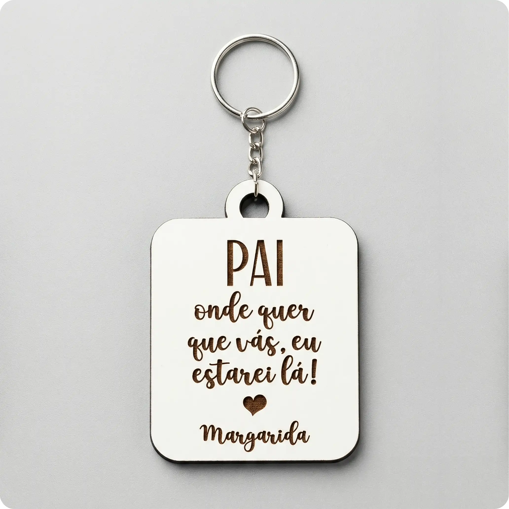 Procuras um presente para o Dia do Pai que seja original, útil e cheio de significado? O nosso porta-chaves em MDF branco gravado a laser é a escolha ideal para surpreenderes o teu pai nesta data tão especial. Esquece as prendas aborrecidas e aposta num detalhe único que ele vai ter orgulho em levar para todo o lado, todos os dias.