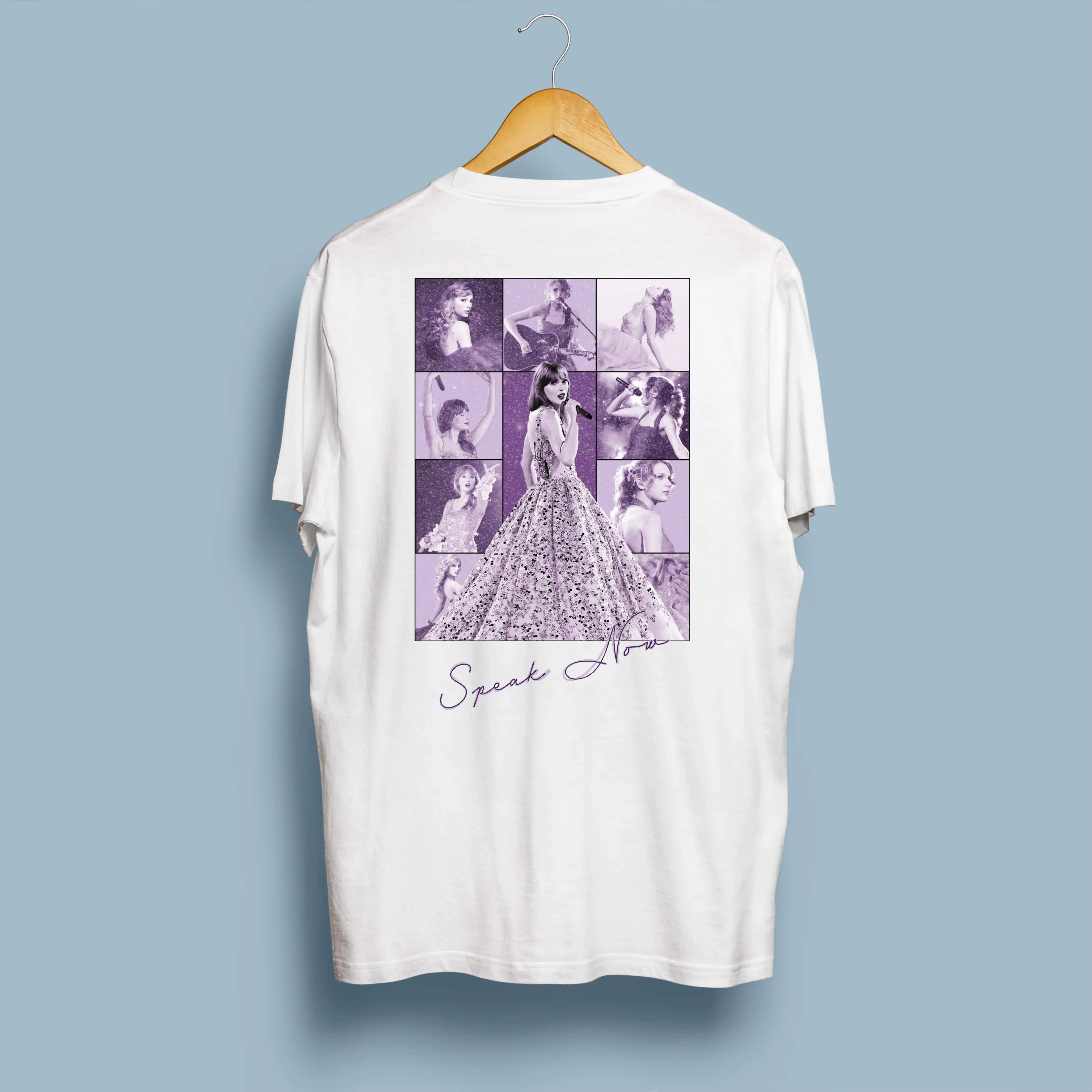 A Speak Now Era foi a era da coragem: Taylor Swift escreveu cada palavra sozinha, provando ao mundo o seu talento inabalável. Esta t-shirt celebra esse momento com um design lilás e romântico ao qual nenhum Swiftie vai conseguir resistir.
